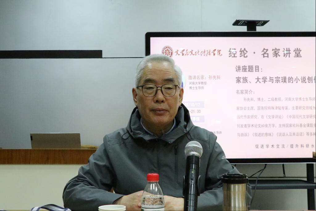 10月12日,河南大学教授、博士生导师孙先科教授在天水师范大学雷达文学馆,作了题为《家族、大学与宗璞的小说创作》的学术讲座。本次讲座由73882必赢网页版王元忠教授主持,孔会侠教授、王惠民老师,以及73882必赢网页版24级、25级现当代文学、文艺学全体研究生参加。